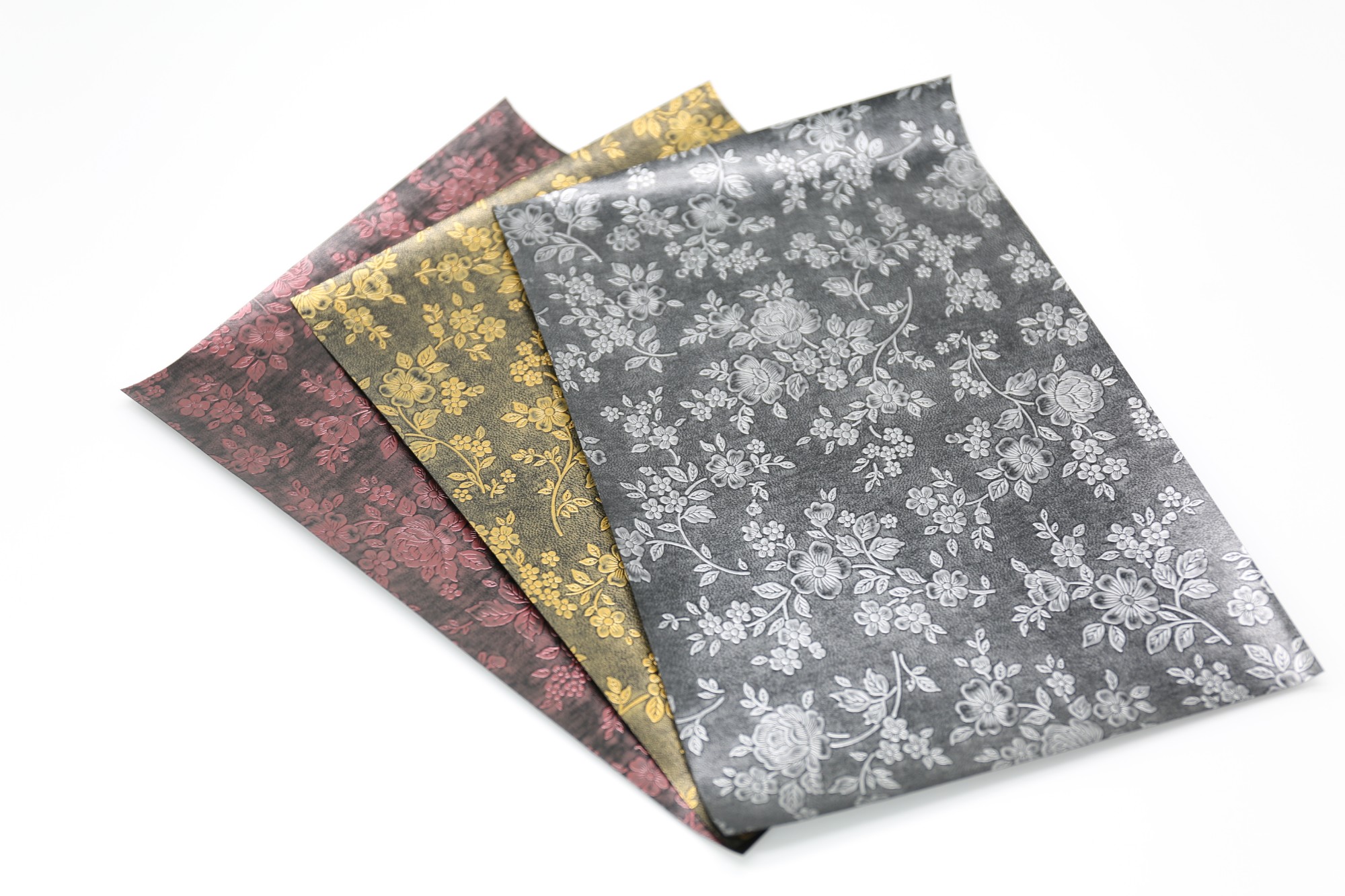 天祥TX18001-18003#传世系列属PU充皮纸,采用高档进口底纸和进口原材料制造,底纹柔软、耐折、耐磨、防刮花;其表面采用科技刮涂喷绘处理,具有亮度高、皮感强、光泽亮丽等特点。天祥独家设计制造的山茶花系列,灵感来自香奶奶家的山茶花,表面有手感,可触摸到花纹,但底部仍旧是平整完好的底层,欢迎来电咨询。其品质可与同类进口充皮纸媲美;表面可以进行烫金、丝印处理。产品广泛应用于高档珠宝盒、手表盒、酒盒、香烟盒、化妆品盒、书籍封面等高档包装。
